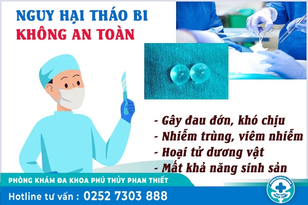 Tuy thủ thuật tháo bi khá đơn giản nhưng việc tự thực hiện tại nhà không có chuyên môn hoặc thực hiện tại cơ sở kém uy tín, không đảm bảo vô trùng làm nam giới phải đối mặt với các nguy cơ: