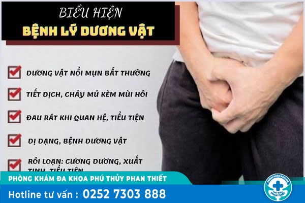 ++ Xuất hiện mụn nước, mụn mủ, mụn cóc,... bất thường ở dương vật.
