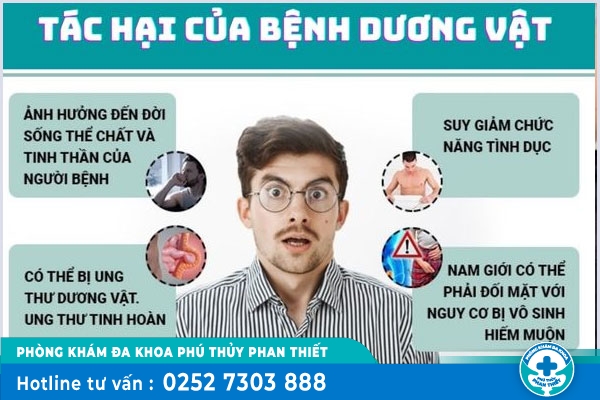 Các bệnh dương vật gây đau đớn, bất tiện trong sinh hoạt, ảnh hưởng đến chất lượng công việc. Thời gian kéo dài sẽ khiến người bệnh mệt mỏi, suy sụp tinh thần, công việc và chất lượng cuộc sống giảm sút nghiêm trọng.
